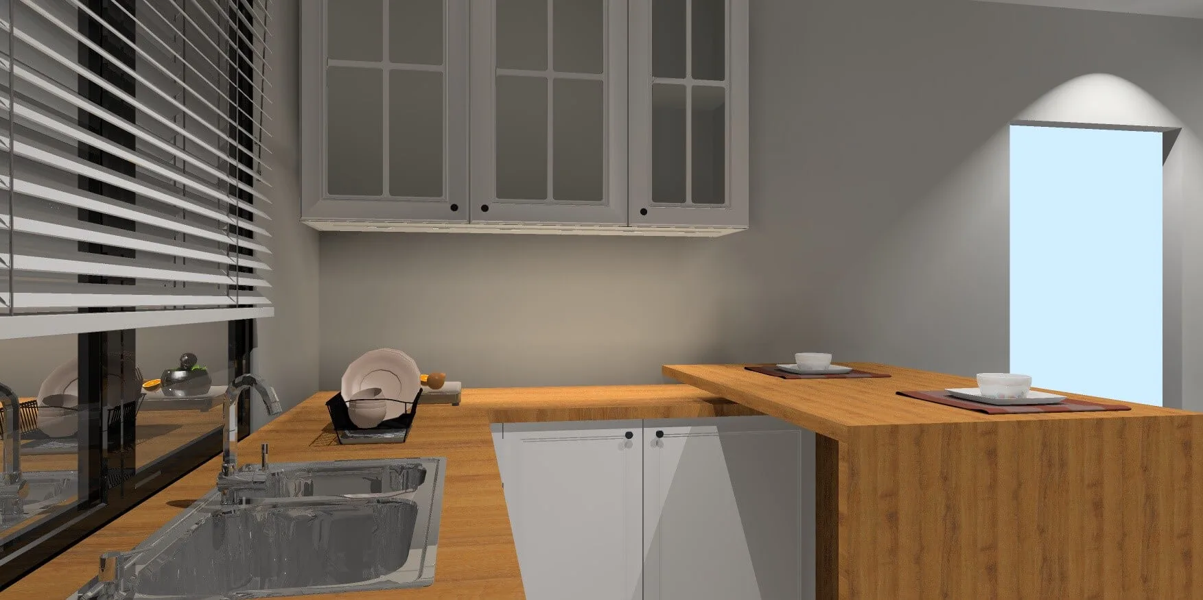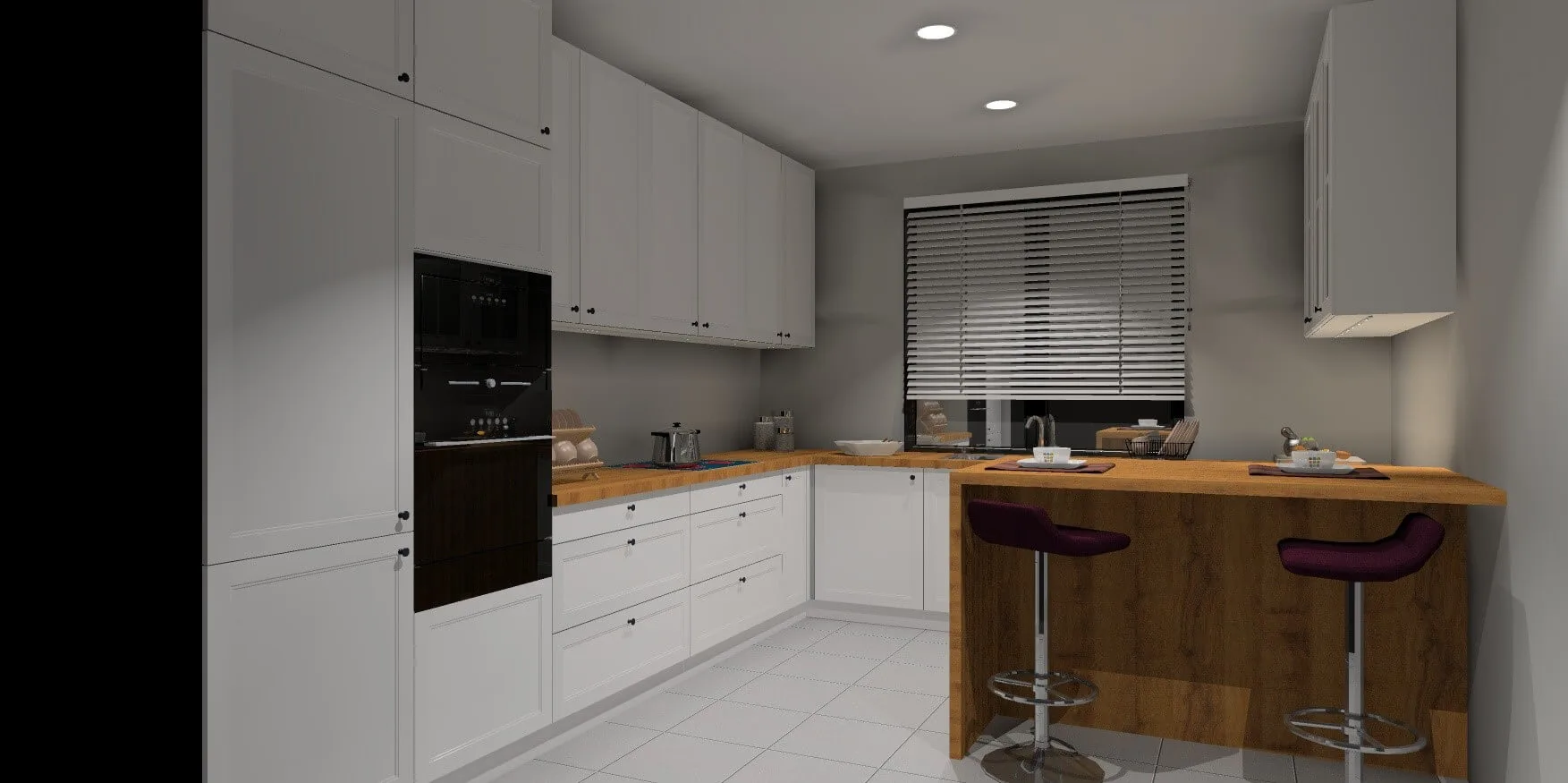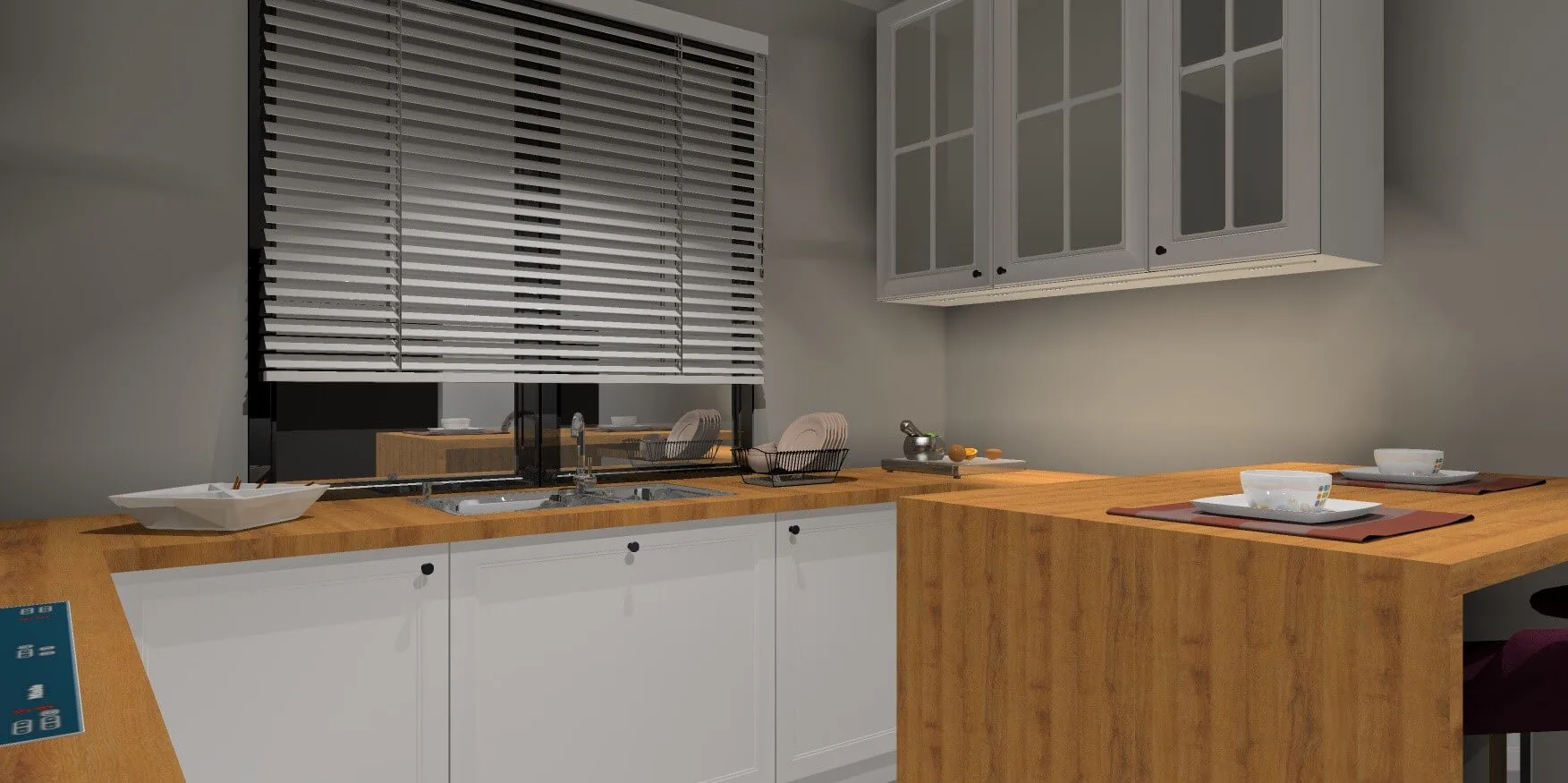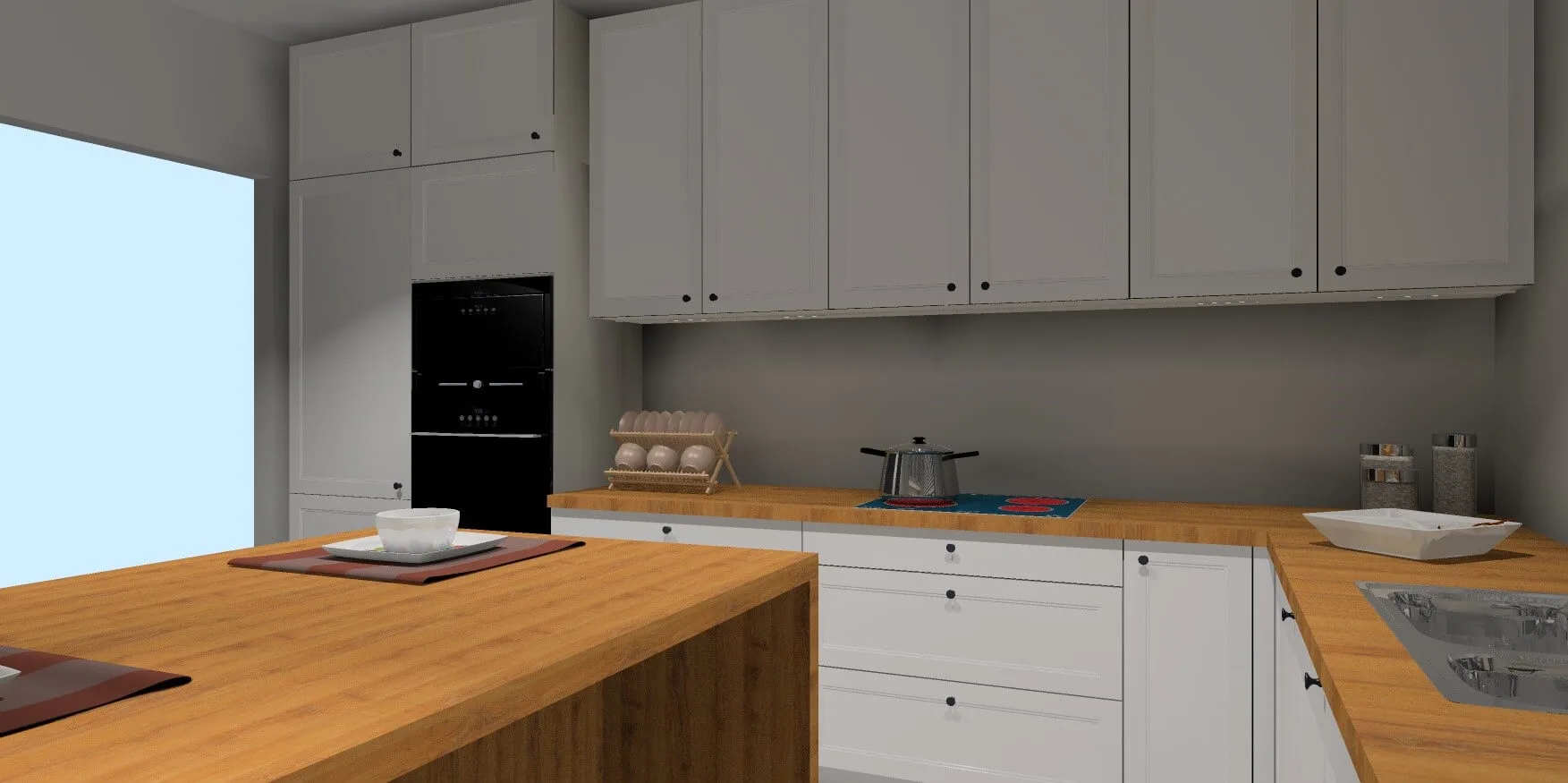 Klasyczna kuchnia z misternie zdobionymi frontami, które nadają wnętrzu elegancji i ponadczasowego uroku. Blaty wykonane z naturalnego drewna wprowadzają ciepło i podkreślają tradycyjny charakter przestrzeni. Dzięki przemyślanemu zagospodarowaniu każdy centymetr kuchni został maksymalnie wykorzystany, tworząc funkcjonalne i stylowe miejsce do codziennego gotowania i rodzinnych spotkań.